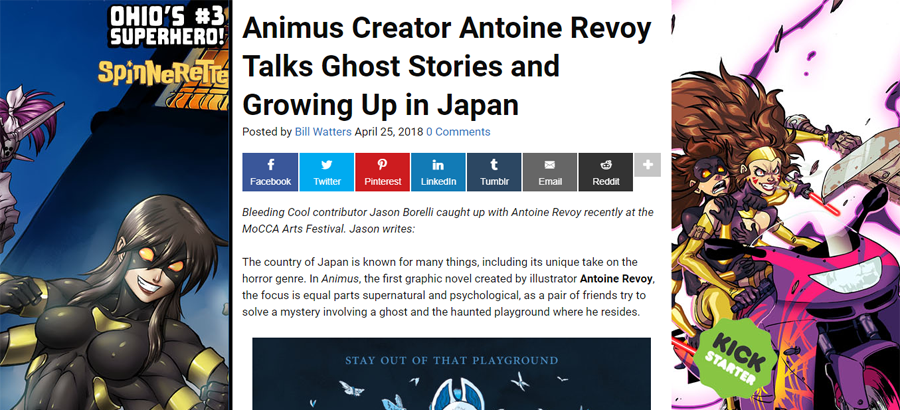 Read my interview at the 2018 MoCCA Arts Fest about ANIMUS, ghost stories and growing up in Japan, with comics blog Bleeding Cool.