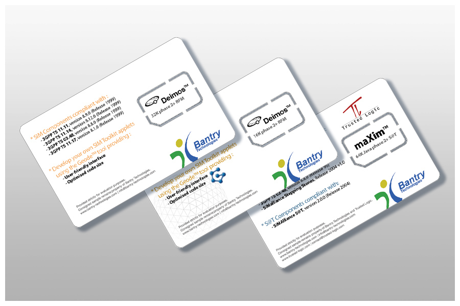 Designs created in February 2006 by Antoine Revoy for print on smart cards containing software by digital security solutions companies Bantry Technologies and Trusted Logic (respectively based in Ireland and France).